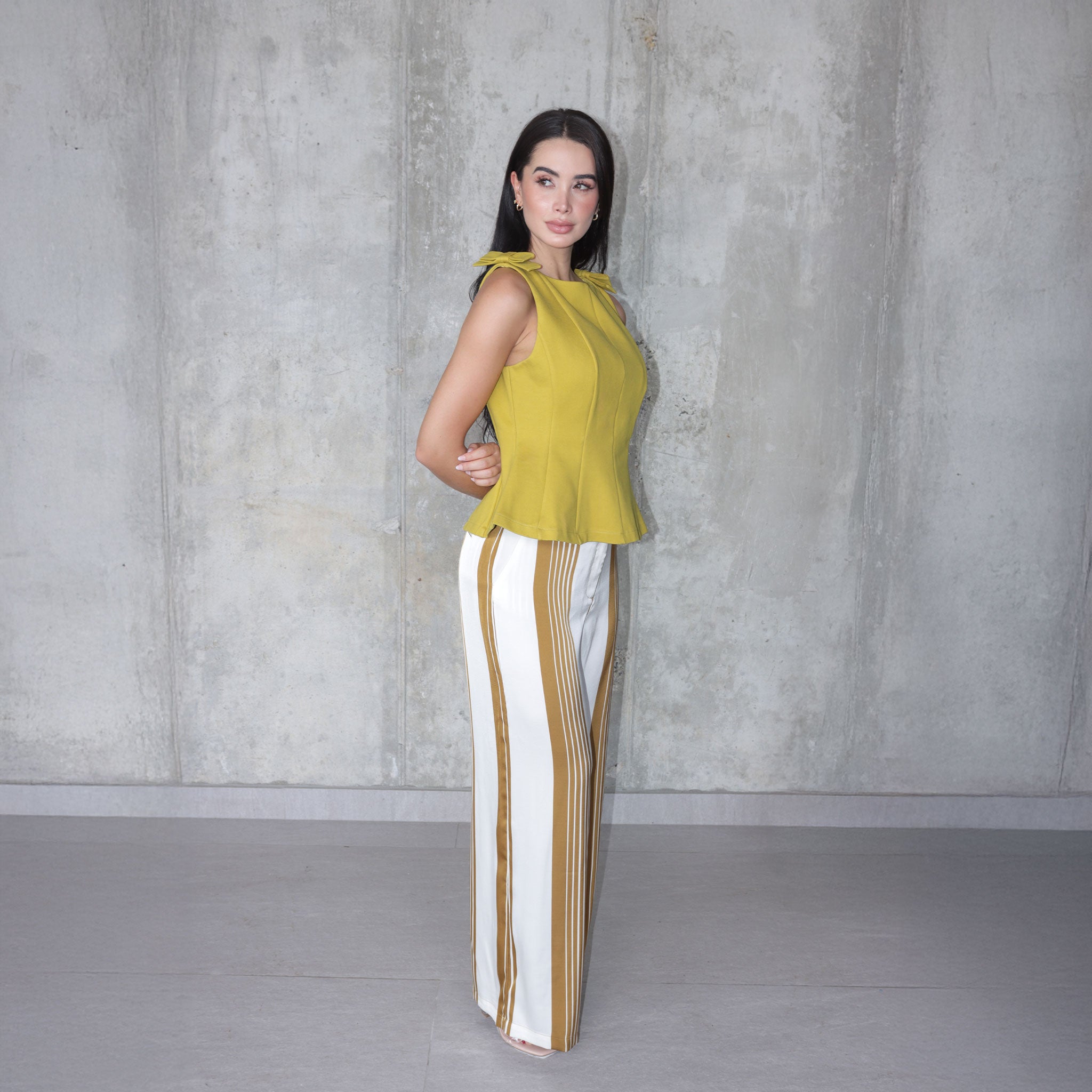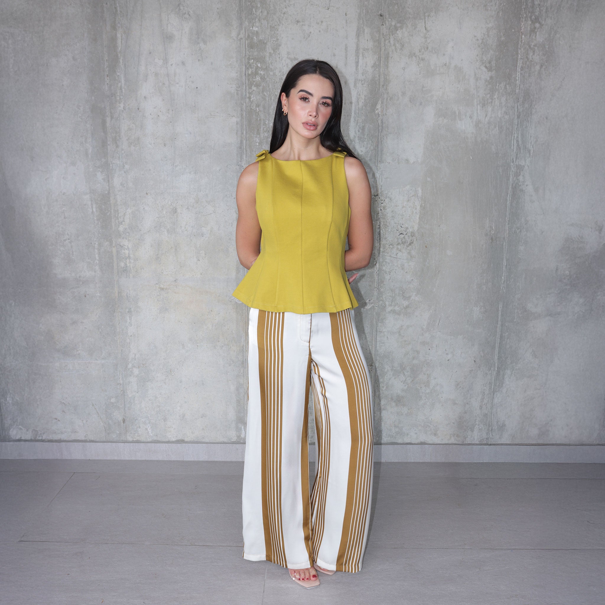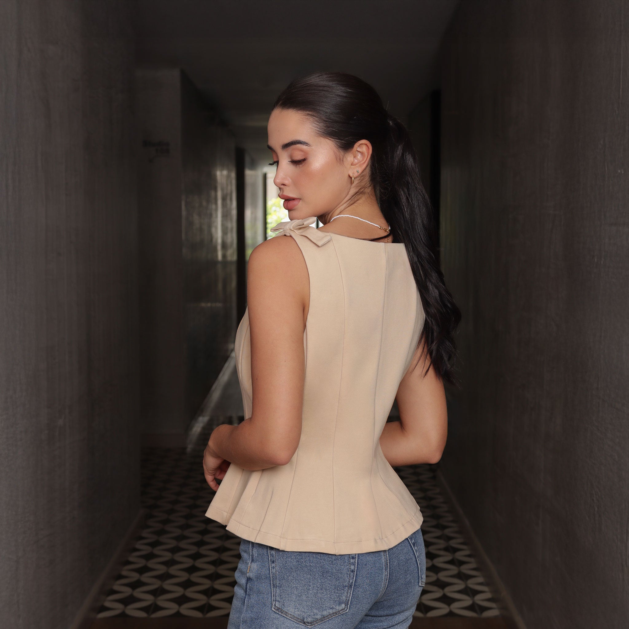Blusa de corte estructurado con delicados lazos en los hombros. Su diseño minimalista realza la silueta con elegancia y sutileza.